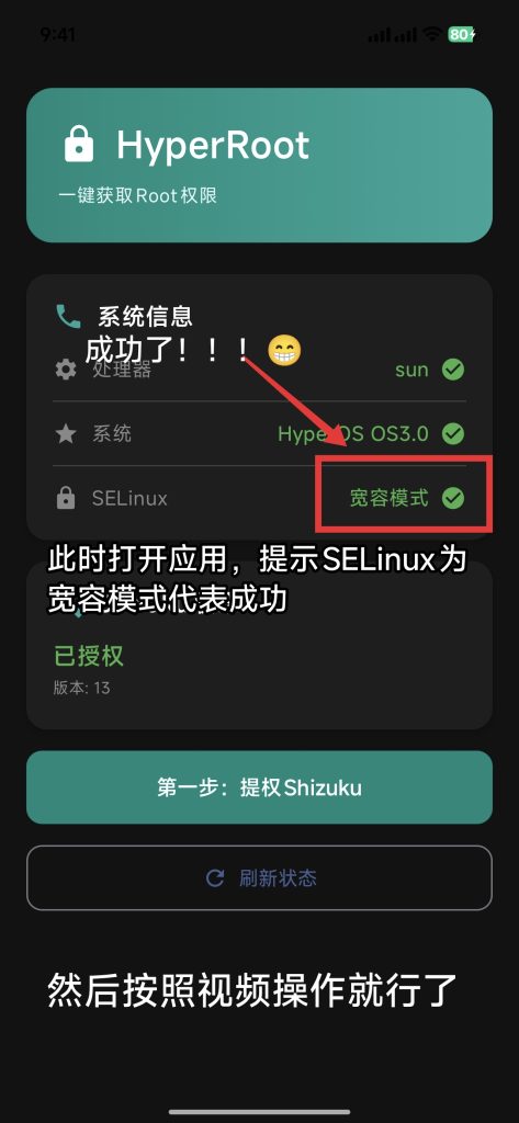 配置好shizhiku后,打开hyper-root,先授权shizhiku,授权后大概率会看到Selinux处于强制模式。
